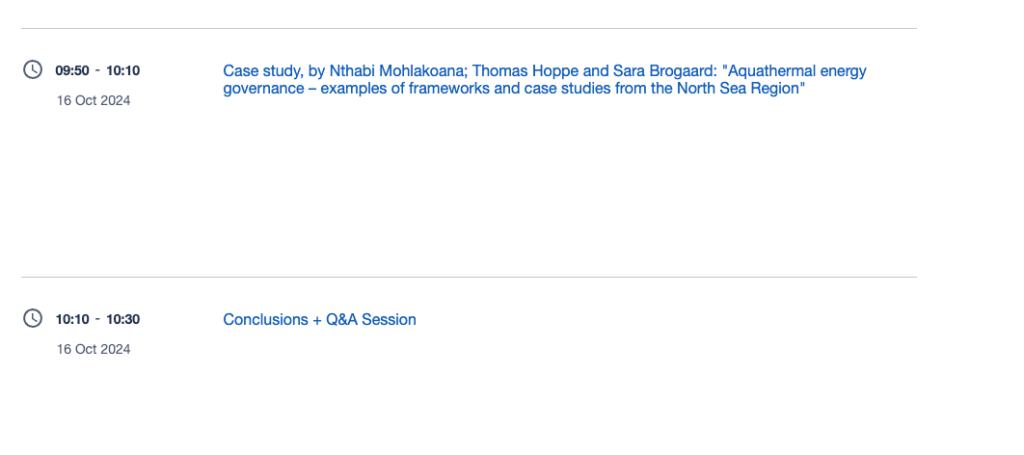 • Case study, by Nthabi Mohlakoana, Thomas Hoppe and Sara Brogaard : “Aquathermal energy governance – examples of frameworks and case studies from the North Sea Region”: